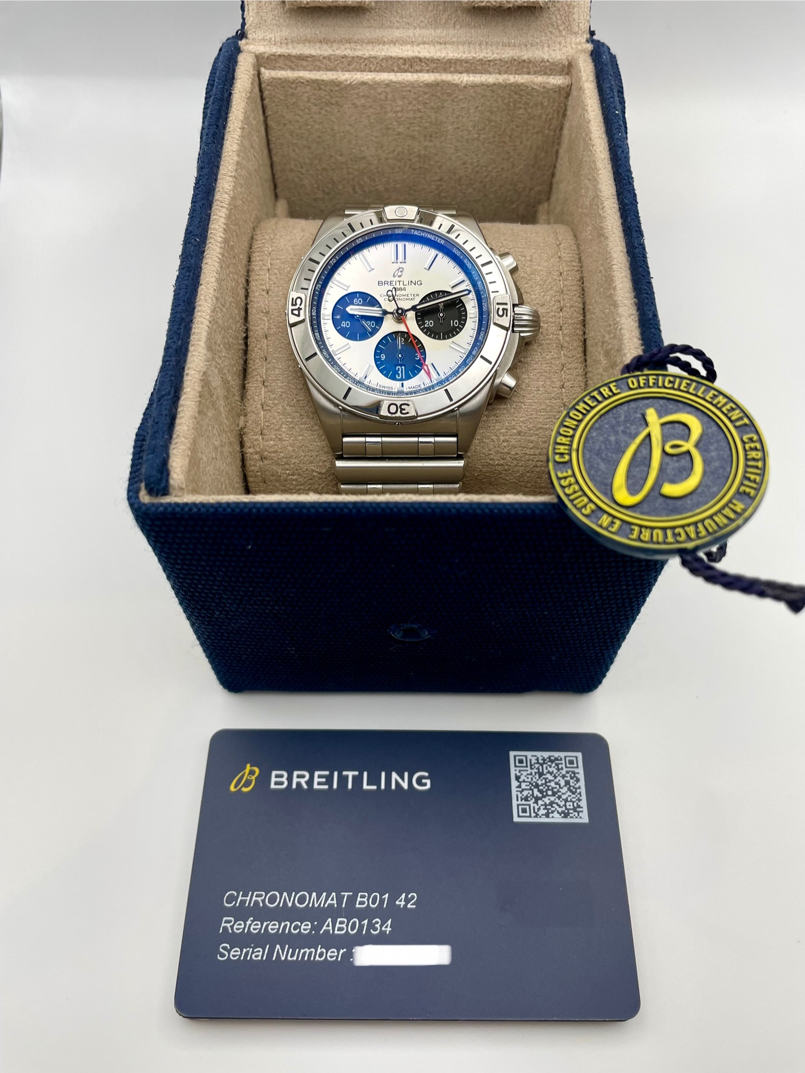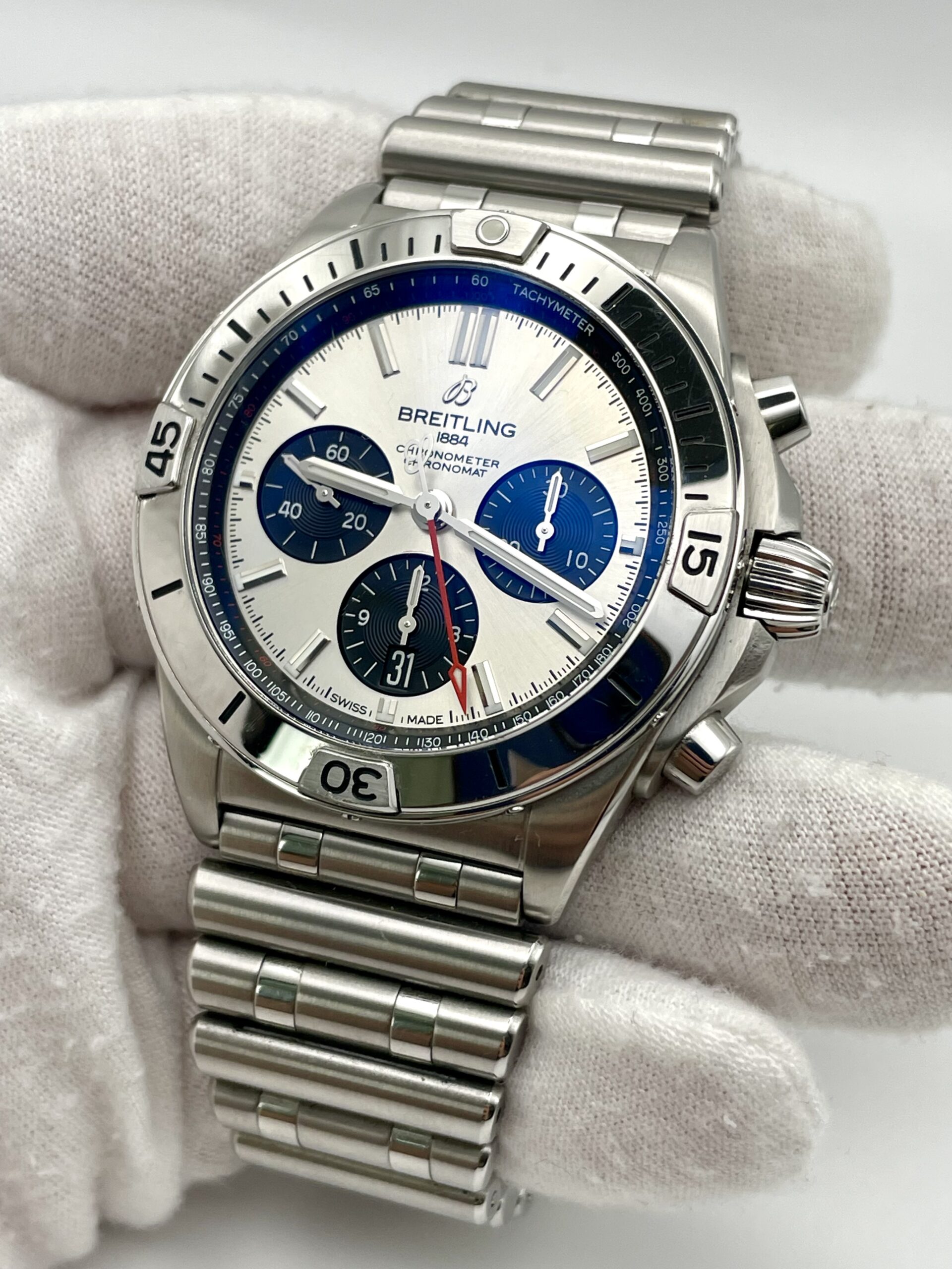 Presenting for sale this bold and sophisticated Breitling Chronomat B01 AB0134, a perfect blend of precision engineering, iconic design, and everyday versatility. Warranty is covered till October 2027.
